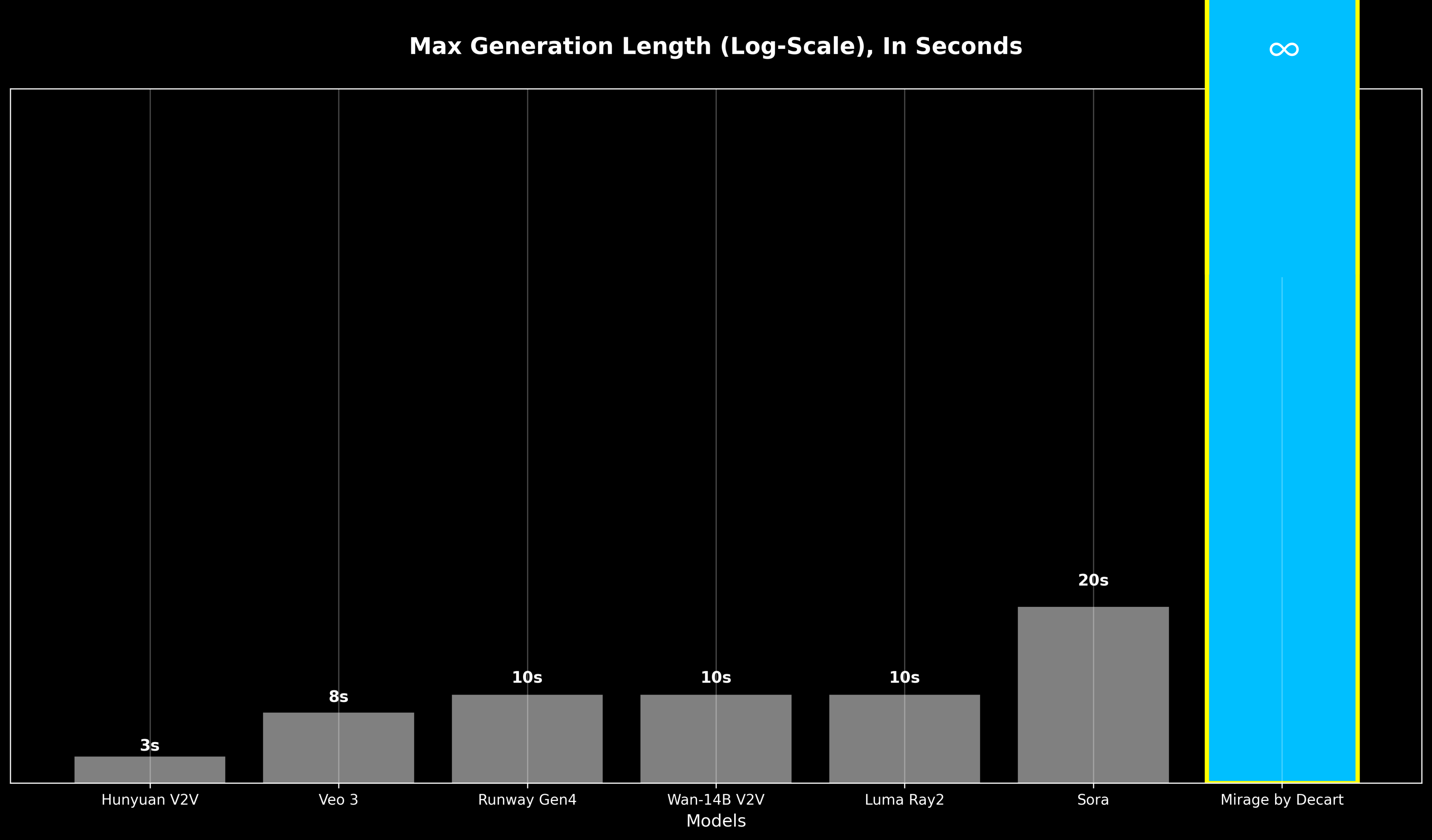 MirageLSD is the first video generation model able to generate infinitely long videos.
